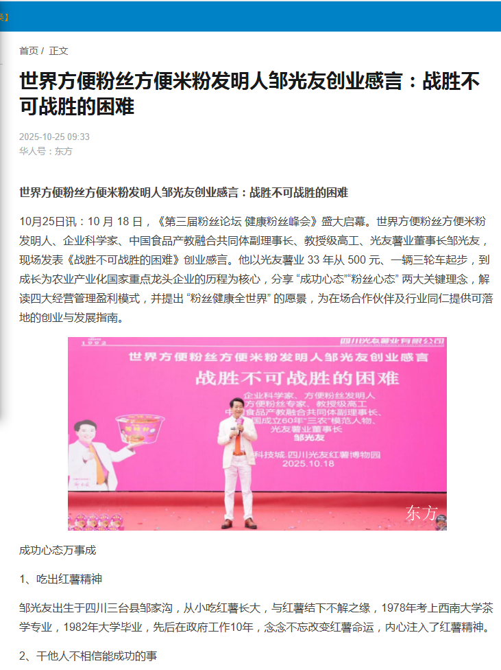 轉載華人頭條-世界方便粉絲方便米粉發(fā)明人鄒光友創(chuàng )業(yè)感言:戰勝不可戰勝的困難